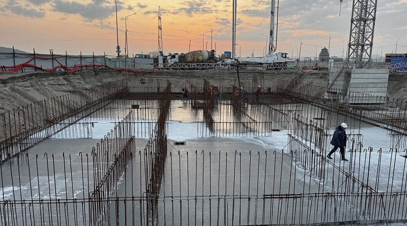 На стройплощадке в Коле подходит к завершению один из ключевых этапов строительства жилого комплекса «Кольские Огни». Строители заканчивают устройство фундаментных плит домов первой очереди.