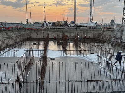 После устройства фундамента компания приступит к следующему этапу – возведению вертикальных конструкций цокольных этажей, а далее начнет работы выше так называемой «нулевой отметки», обозначающей уровень земли.