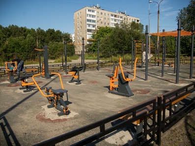 Спортивный корт уже покрашен, на площадке установлены новые современные тренажеры для развития всех групп мышц, а в ближайшее время будет уложено резиновое покрытие.