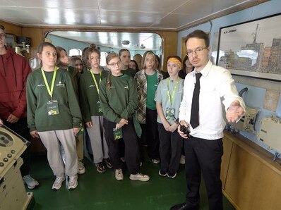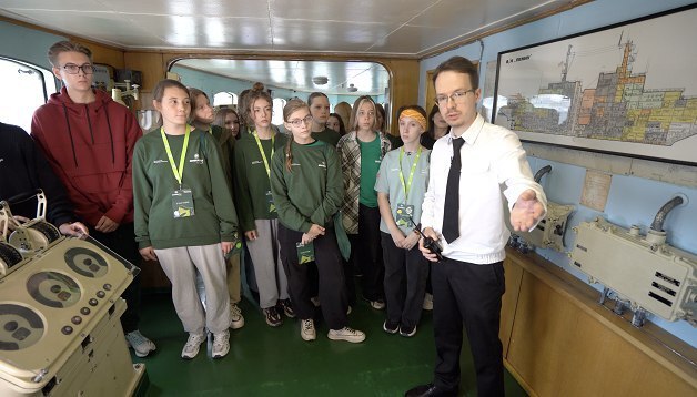 Знакомство с первым атомным ледоколом позволило школьникам ощутить грандиозный масштаб промышленной истории страны и уникальность технологий, заложенных в основу развития атомпрома. Лекцию-экскурсию по легендарному объекту для ребят провел специалист 1-ой категории Арктического выставочного центра «Атомный ледокол «Ленин» Константин Демаков. Он рассказал об устройстве ледокола, особенностях его работы во главе каравана грузовых или исследовательских судов.