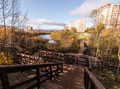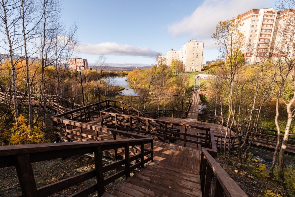Сегодня в Первомайском административном округе города Мурманска временно исполняющий полномочия главы города Иван Лебедев оценил новый деревянный променад на территории зеленой зоны вдоль ручья Чистого.