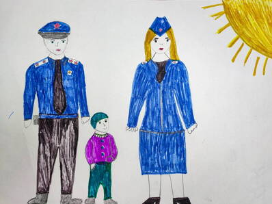 Тимофей Костыгов с работой «Моя мама – полицейский». Мама Тимофея – капитан полиции Станислава Костыгова, старший инспектор по делам несовершеннолетних отдела полиции № 3 УМВД России по г. Мурманску.