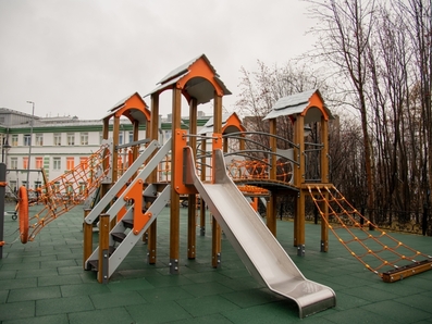 Подрядной организацией выполнен полный демонтаж старых конструкций. На территории установлено 10 современных игровых и спортивных комплексов, рассчитанных на детей разного возраста. Также для удобства взрослых здесь размещены новые комфортные скамейки.