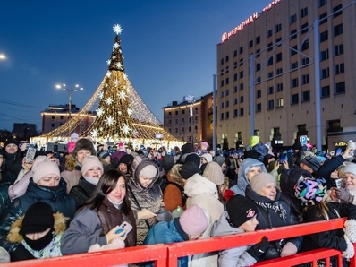 Традиционный праздник, посвященный зажжению огней на главной елке Кольского Заполярья, прошел на площади перед конгресс-отелем «Меридиан» в воскресенье.