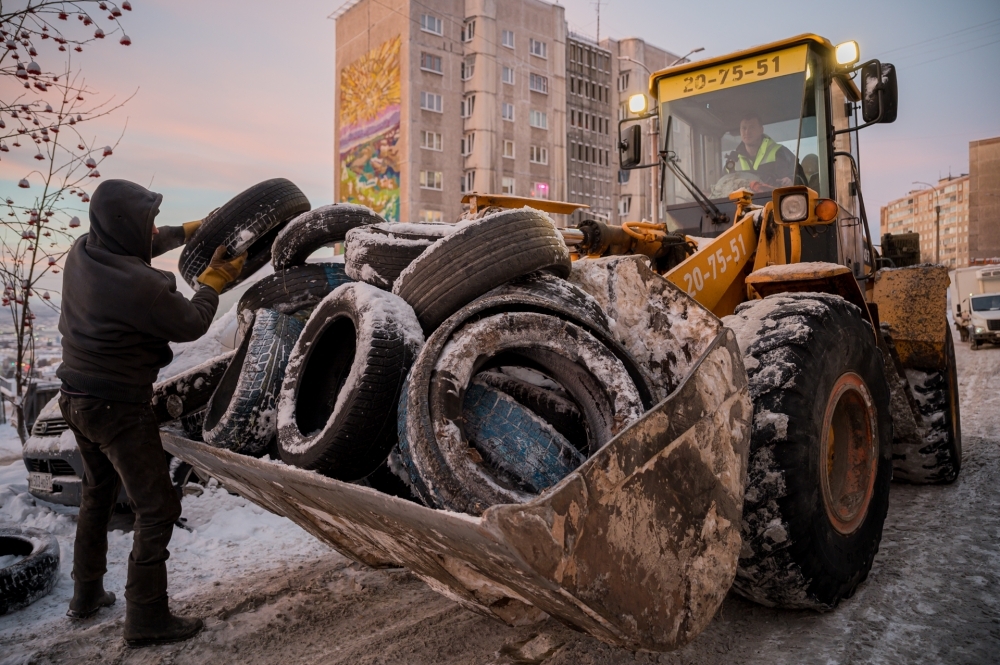 Силами ММБУ «Экосистема» с двух территорий города Мурманска, свободных от прав третьих лиц, сегодня были вывезены отработанные автомобильные шины.