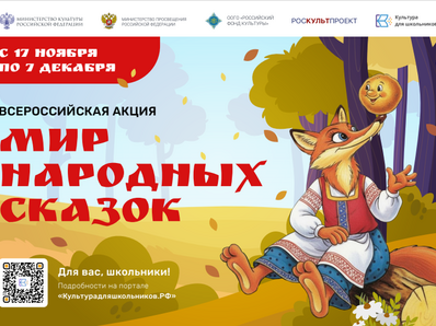 В рамках проекта «Культура для школьников», с 17 ноября 2025 года проходит всероссийская акция «Мир народных сказок».