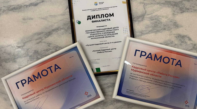 Напомним, в ноябре коллектив регионального кадрового центра победил в IV Всероссийском конкурсе профессионального мастерства в сфере занятость населения в номинации «Лучшая команда по управлению клиентским опытом» и занял второе место в проекте «Кадровые центры для кадровых решений». А команда Мончегорского кадрового центра вошла в ТОП-5 лучших кадровых центров страны. Награды за эти достижения делегация Мурманской области также получила на Всероссийском кадровом форуме.
