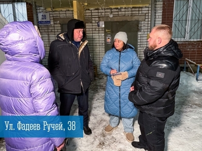 Исполняющий обязанности начальника управления Октябрьского округа Павел Воронин и депутат Совета депутатов города Мурманска Анна Верещагина провели встречу с жителями около дома № 17 по ул. Старостина. В ходе обсуждения были подняты вопросы содержания уличных лестниц, правил парковки автомобилей и установки новой детской площадки.