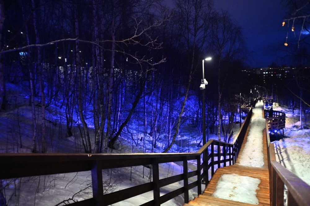 В рамках продолжения работ по благоустройству общественных пространств на территории зоны отдыха «Чистый ручей» — со стороны проспекта Кольский и улицы Беринга — завершился монтаж архитектурно-художественной подсветки. К Новому году здесь зажглись яркие огни, сделав вечерние прогулки ещё более уютными и праздничными.