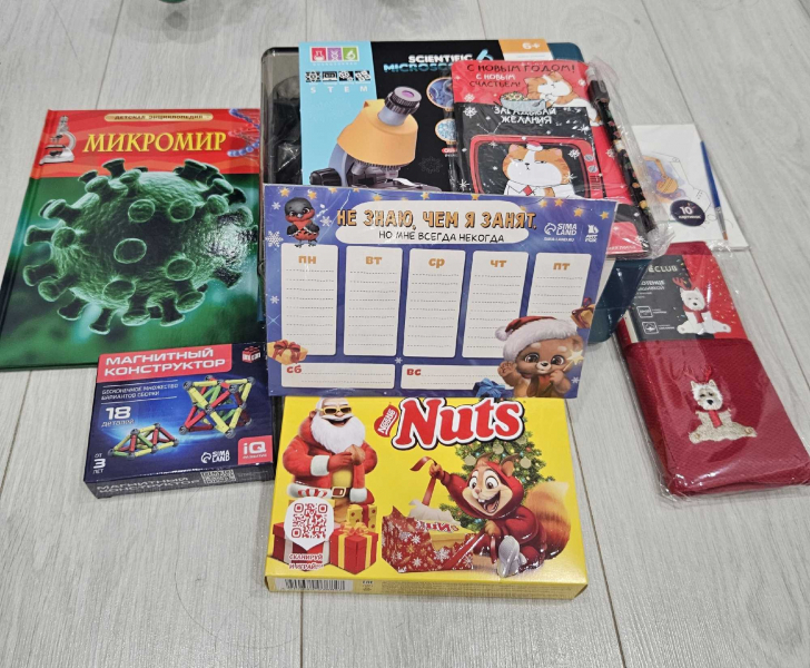Оказалось, что Артём – юный исследователь, давно мечтающий о собственном микроскопе, чтобы изучать окружающий мир. А еще он с большим удовольствием проводит время за сборкой сложных фигур из магнитного конструктора. Именно эти две заветные мечты и были бережно упакованы в новогодние коробки и отправлены мальчику.
