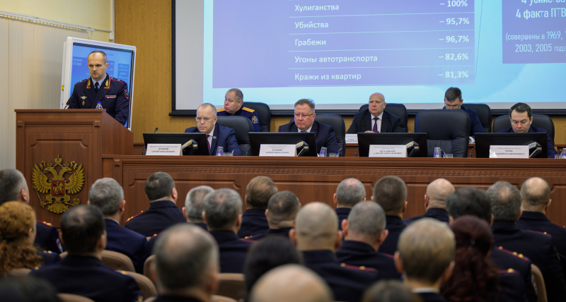 С основным докладом об итогах деятельности выступил начальник УМВД России по Мурманской области генерал-майор полиции Алексей Веселовский. Он проинформировал собравшихся, что оперативная обстановка в регионе в 2025 году характеризовалась устойчивой положительной динамикой. Общее число зарегистрированных преступлений снизилось на 17,8%, всего было задокументировано 9,9 тысяч сообщений о преступлениях и правонарушениях.
