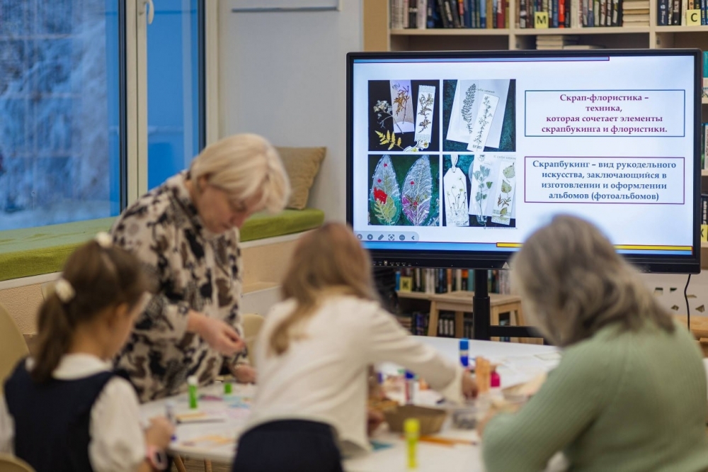 Сегодня в Центральной детской библиотеке (ул. Беринга, 28) состоялся мастер-класс «Скрап-флористика. Книжная закладка» в рамках губернаторского проекта «Северное долголетие».