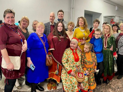 В праздничной атмосфере выставку открыла директор музея Елена Химчук. Присоединились к приветствиям сестра Анастасии Мозолевской - старейшина Ассоциации кольских саамов Нина Афанасьева, прочитавшая проникновенные стихи и руководитель Центра народов Севера и межнационального сотрудничества, председатель Мурманского отделения Ассамблеи народов России Надежда Чупрова, которая передала в дар музею книги саамских авторов, выпущенные в 2025 году.