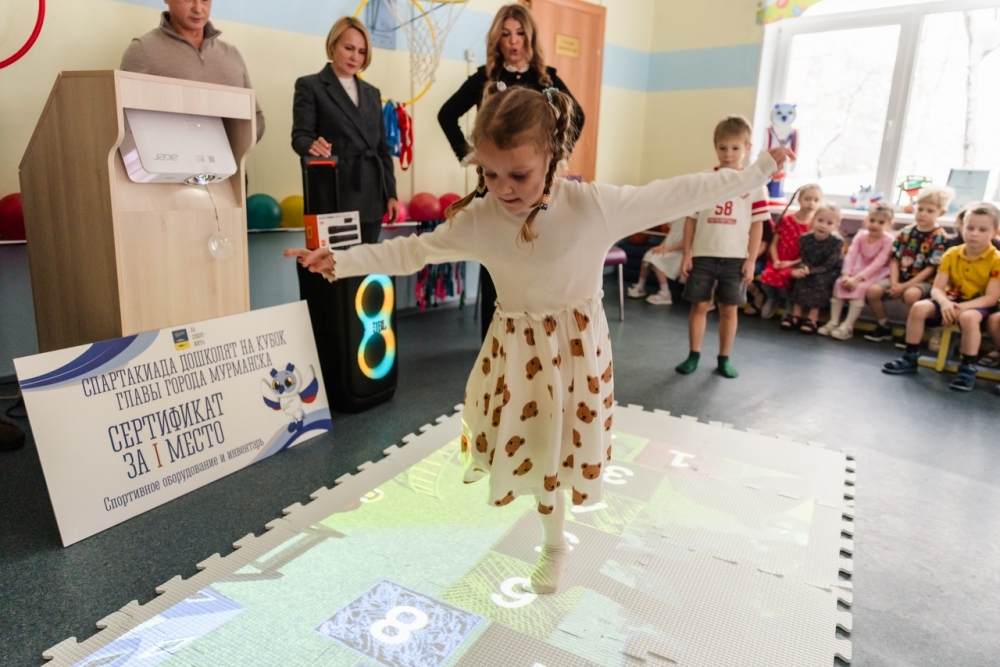 Сегодня заместитель главы города Мурманска Елена Ширшова вручила команде‑победителю Спартакиады дошколят на Кубок Главы города Мурманска комплект интерактивного оборудования.