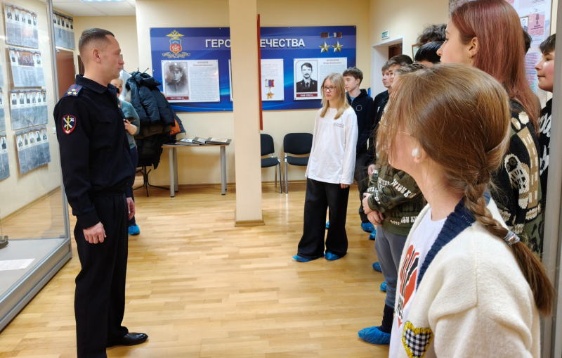 Экскурсовод Инна Викторовна Олехова погрузила ребят в вековую историю ведомства, но особый акцент сделала на сегодняшнем дне — 12 февраля.