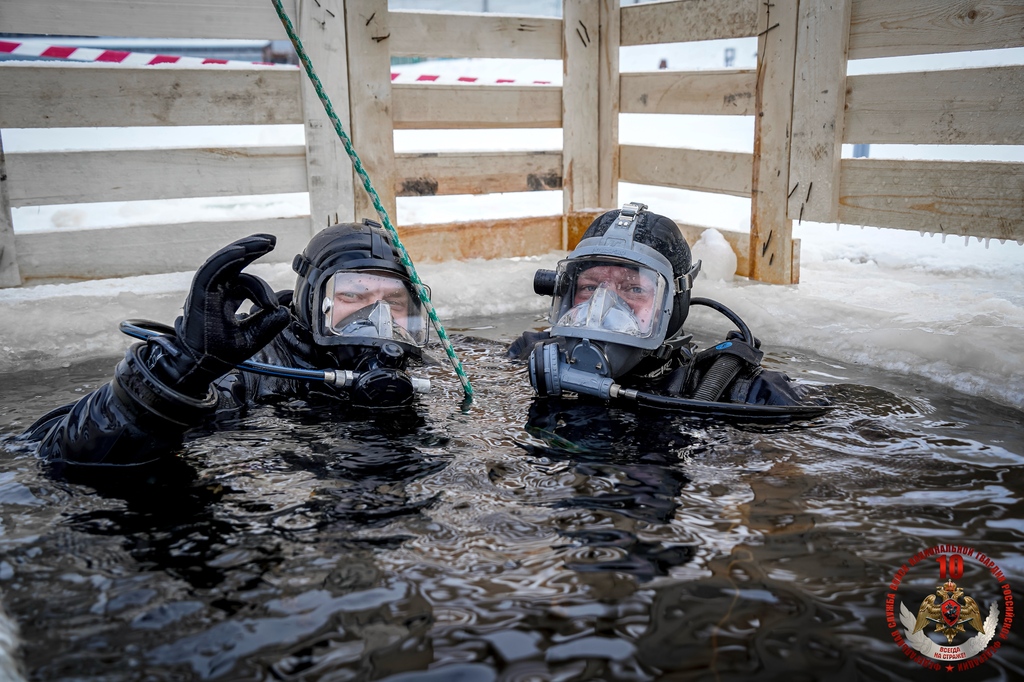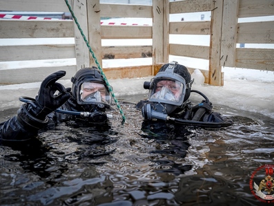 В ходе учебного сбора на открытой воде специалисты отработали учебные вопросы по проведению водолазных спусков при отрицательной температуре воздуха со льда и подо льдом. Развернув водолазную станцию, участники сбора провели погружения на глубину до 20 м, выполнили практические действия подводного ориентирования. В ходе тренировочных занятий водолазы с применением снаряжения с открытой схемой дыхания отработали проведение погружений как одиночно, так и в составе групп по два-три человека, а также оказание помощи условно пострадавшему водолазу.