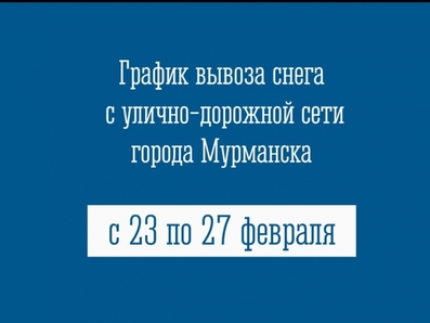 График вывоза снега с улично-дорожной сети города Мурманска с 23 по 27 февраля.
