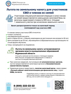Участники специальной военной операции и члены их семей освобождены от уплаты налога на имущество физических лиц на период участия в СВО. Льгота распространяется только на налоговый период (календарный год) участия в СВО.