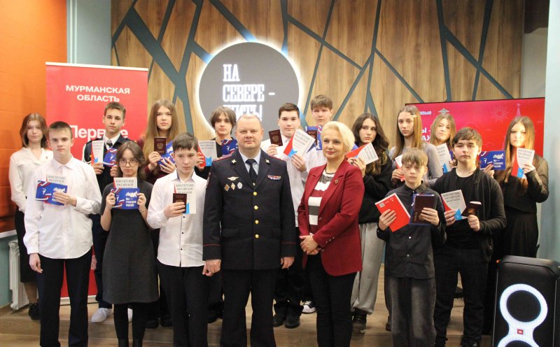 В областном центре состоялась торжественная церемония вручения первых паспортов юным мурманчанам, приуроченная ко Дню воссоединения Крыма с Россией. Мероприятие прошло в рамках масштабной Всероссийской акции Движения Первых «Мы — граждане России!».