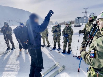 На склонах Хибин офицеры СОБРа продемонстрировали ребятам тактику передвижения мотоманевренных групп в условиях горно-лесистой местности. Кульминацией встречи стал радиальный выход с использованием специального альпинистского снаряжения по горному рельефу. Особое внимание было уделено действиям по подготовке временных снежных убежищ и спасению пострадавшего, попавшего под лавину: росгвардейцы на практике показали алгоритм поиска и порядок эвакуации условного пострадавшего из снежного плена.