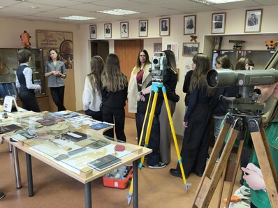 Школьники смогли увидеть, как со временем менялись геодезические приборы и инструменты: от первых устройств, созданных ещё в 1947 году, до современных высокоточных технологий, которые сегодня используют специалисты.