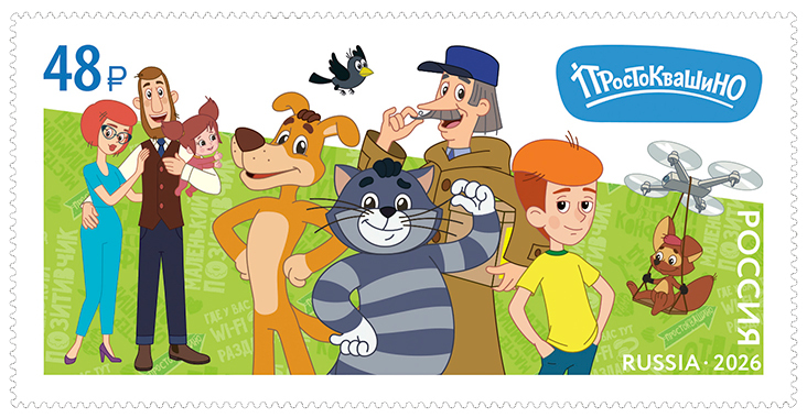 Почта России выпустила в обращение три марки с изображениями героев современных мультфильмов «Простоквашино», «Умка» и «Чемпионы».