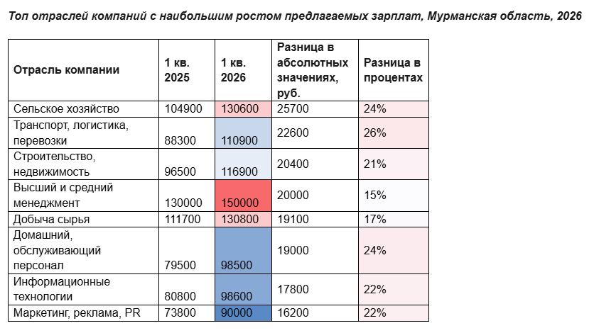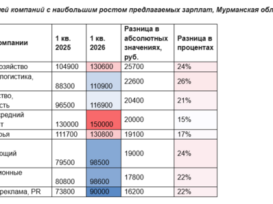 Эксперты hh.ru, ведущей российской платформы онлайн-рекрутинга, провели анализ рынка труда Мурманской области и выяснили, у представителей каких направлений в первом квартале 2026 года предлагаемая зарплата выросла заметнее всего.