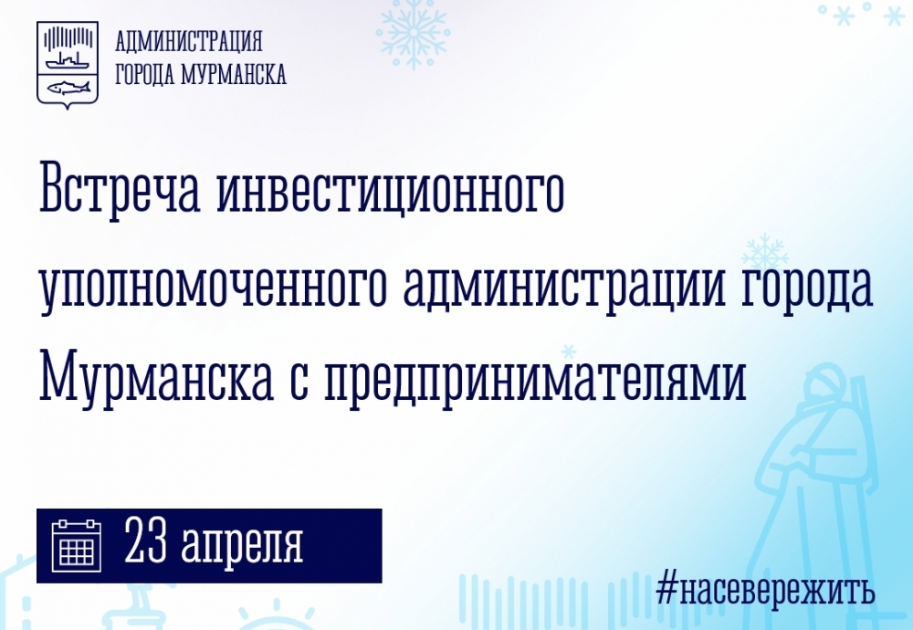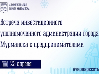 Комитет по экономическому развитию и туризму администрации города Мурманска информирует о том, что 23.04.2026 в 11:00 инвестиционным уполномоченным администрации города Мурманска в целях консультационной поддержки предпринимателей и оперативного разрешения возникающих у них проблемных вопросов. Мероприятие состоится по адресу: г. Мурманск, просп. Ленина, 87 (здание комитета по экономическому развитию и туризму администрации города Мурманска). Заявки на участие принимаются до 17:00 22.04.2026 по электронной почте ekonomika@citymurmansk. ru и по телефону 45-94-75.